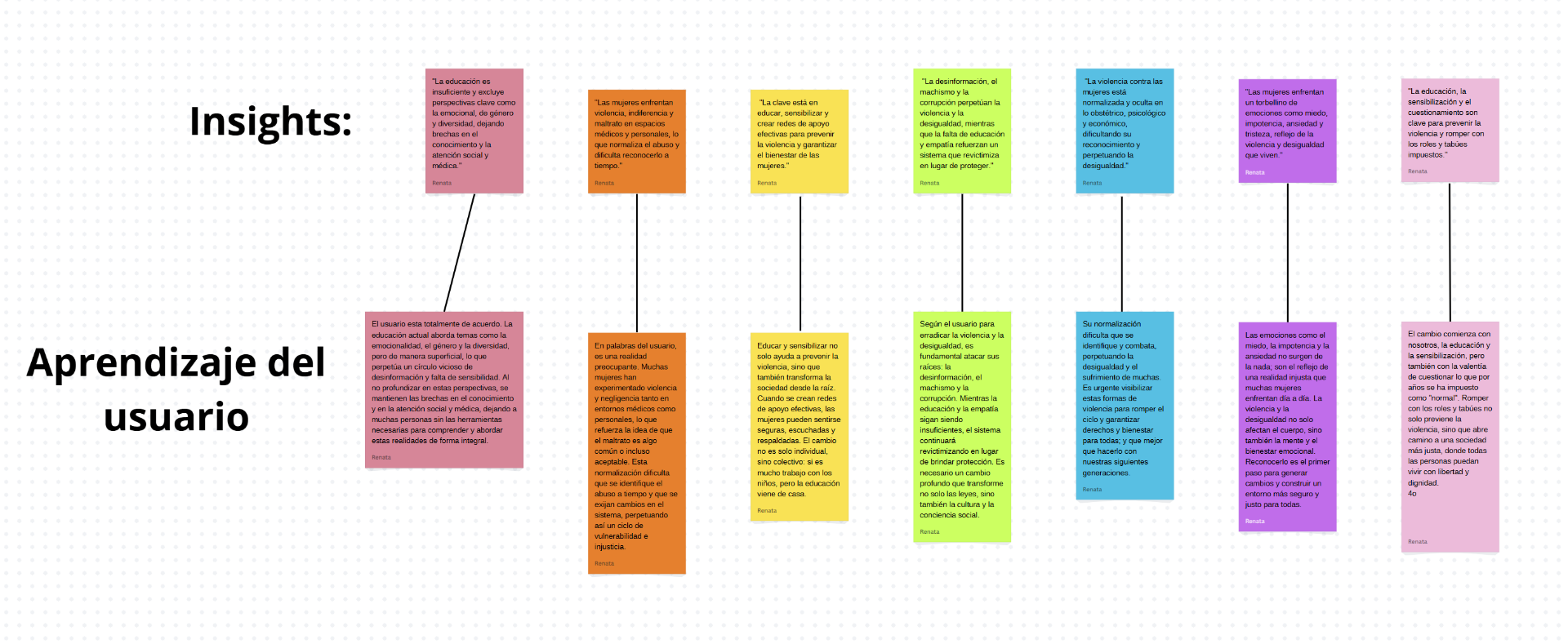 Cuando hablamos del usuario buscamos enfocarnos en comprender a las maestras que enseñan sobre violencia multidimensional con perspectiva de género. Para ello, se analizaron diversos factores, como sus métodos de enseñanza, los retos que enfrentan en el aula, la relación con su alumnado y la disponibilidad de materiales didácticos. A partir de estos hallazgos, se identificaron los aspectos más relevantes en función de la propuesta conceptual, los principios de diseño y la problemática central, priorizando estrategias que les permitan mejorar su enseñanza y generar un impacto significativo en el aprendizaje.